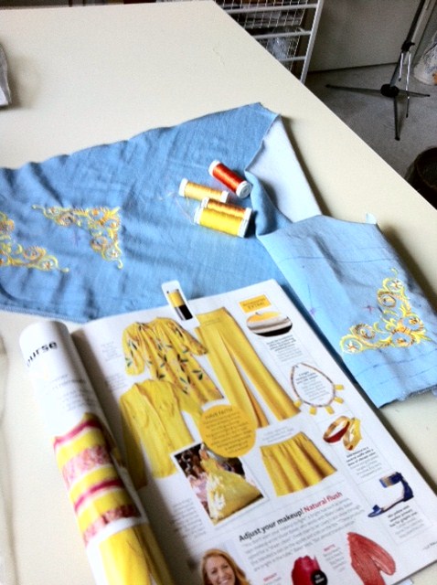 Wondering about the header image on this blog? Wanna know how that piece of blue fabric and yellow embroidery ended up? Read on.  Are you wondering what I was making and why I did not choose a better graphic? Are you questioning whether I was able to get those marks out of the fabric?