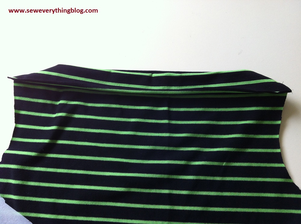 - Fold over the facing on the neckline, and press. See photo below where you can see the wrong side of the shirt.