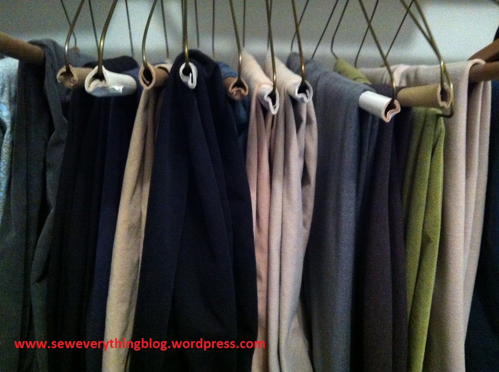 An overdue assessment of the closet revealed that I’m in possession of pairs of trousers as old as ten years or more! And it’s showing. Er, there are more old pairs to the left, out of the picture range.