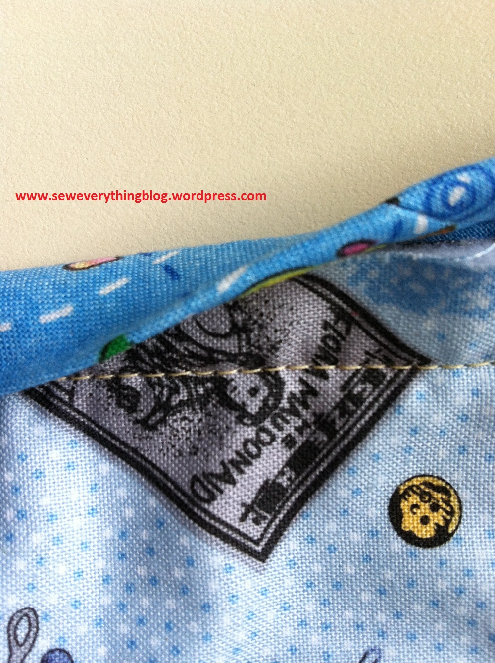 Run out of bobbin thread in the middle of a seam? Before you start another bobbin winding session, take a look at the seam. Will it matter if you use a bobbin thread which does not match the fabric? Sometimes you can use up leftover bobbin thread from other projects if this particular seam will be covered. For example, my seam in the picture above will be covered by bias binding!