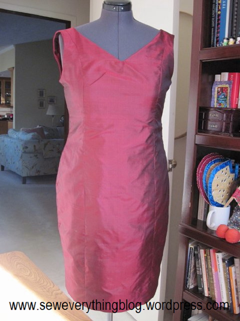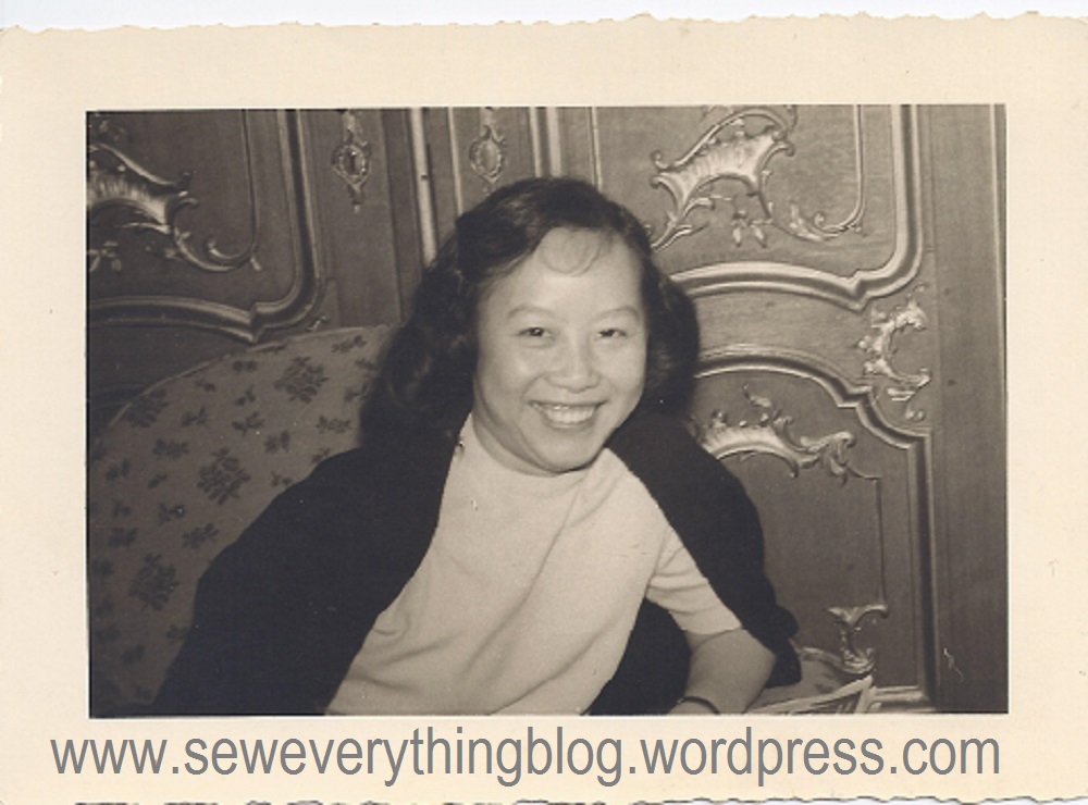 In 2012, after a very long time in the works, I finished a dress for my aunt Jady (pictured above somewhere in France in 1960), along the lines of a couture dress in lightweight maroon silk taffeta. I think in India they call it shot silk. Couture, because that is what she appreciated. She was picky about the fit and the muslin went back and forth in the mail several times. In La Jolla, she led an active life and would have put this dress to good use. She gave me a dress she owned and loved, to copy the fit and style for her. I used knowledge gained from Kenneth King’s class on Pattern Review to copy her original dress. She had purchased the fabric in India, and had stored it for a long time – a true non-sewing fabric collector. I underlined the dress in silk organza and lined it in Bemberg Rayon; the zipper was hand-picked. In the picture you can see it on my dress form which is a much larger size than Jady was; the back of the dress could not be zipped on the form, hence the wonky look in the picture. I am proud of my aunt for appreciating the finer details of dressmaking, and am proud that I made a dress for her. I am prouder that her work was dedicated to cancer research.