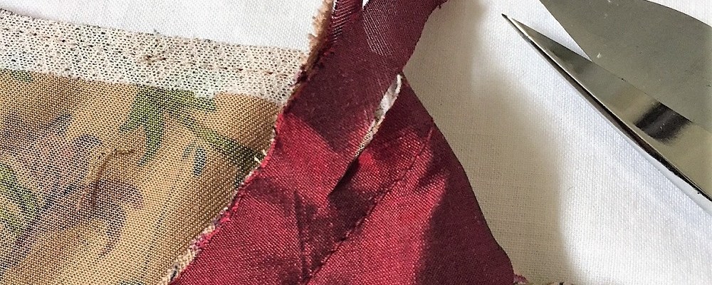 • Machine sew the seam and pull out the basting. Trim the seam allowance down to 1/8 inch.