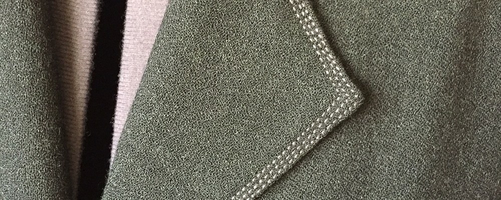 • Last but not least, my wool crepe jacket which I sewed up in – wait for it – 1997/98!  The edges get a crisp tailored look with three rows of topstitching on the collar edges, lapel and down the front edges. It may fall under the purely aesthetic category, but it does help tamp down and crisp up the edges.  This jacket also remains a much loved piece; it’s made with a pattern by Fashion Sewing Group (owner/designer Nancy Erickson is now retired) and was inspired by modern Chanel jackets in their 1997 collection.