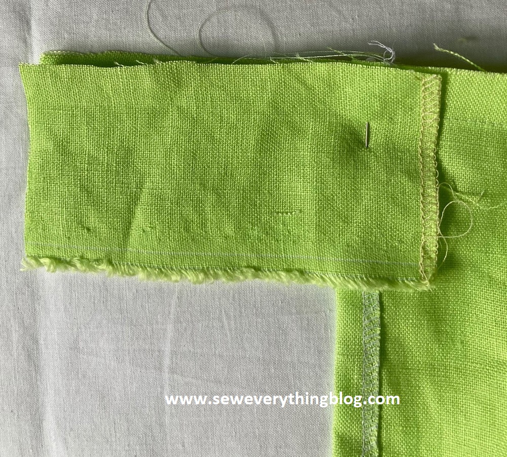 Due to not enough fabric for the separate waistband, a waist facing seemed to be the best solution. See the extension, there? Well, once turned over as a facing, the other side needed a “cover up”. Yikes! There’s an example of not thinking it through.