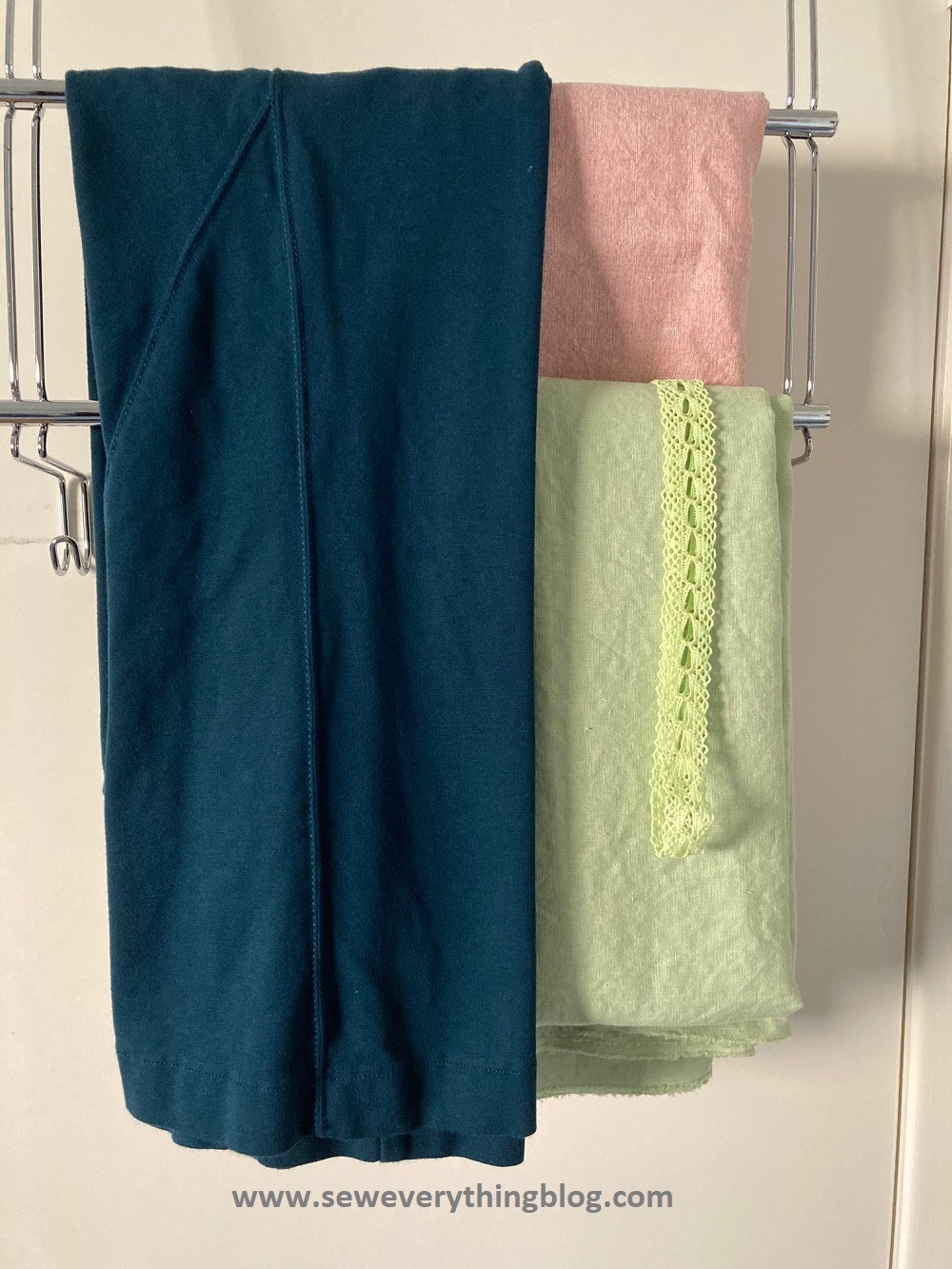 I chose the combo by the House of Lanvin. The hunter green, powder pink and pistachio green combinations started talking to me; and I quickly did a wardrobe scan, pulled out the forest green ponte knit pants, pink bamboo-linen and pistachio green linen, both stash fabrics. (Amazingly, there is more forest green and powder pink items in my closet). I’ll share the actual projects in this combination when I start to make them — putting some thought into it, right now.