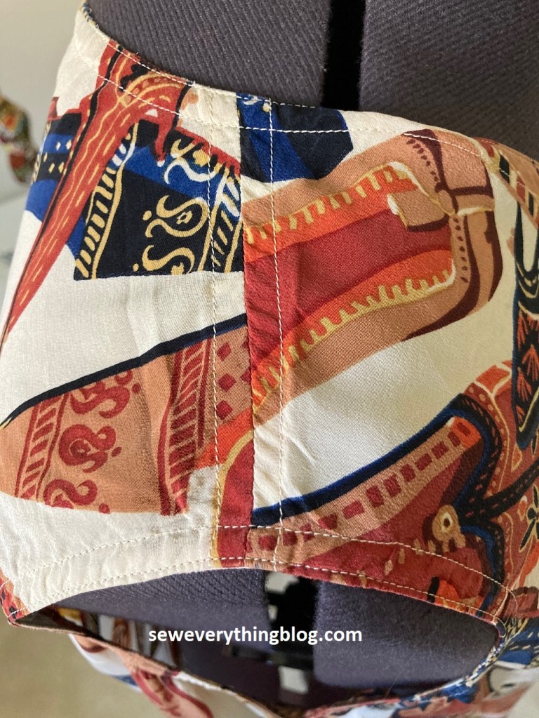 The only thing I undid was the hem; it was a tedious process because of the delicacy of the silk crepe and the fact that I had used a small 2.5mm stitch length to give it a “finely sewn” look. I may or may not have made a little tear in the hem trying to rush the undo process. Also, I could have left the hem along and added the band without undoing the hem. Hindsight is so wise.