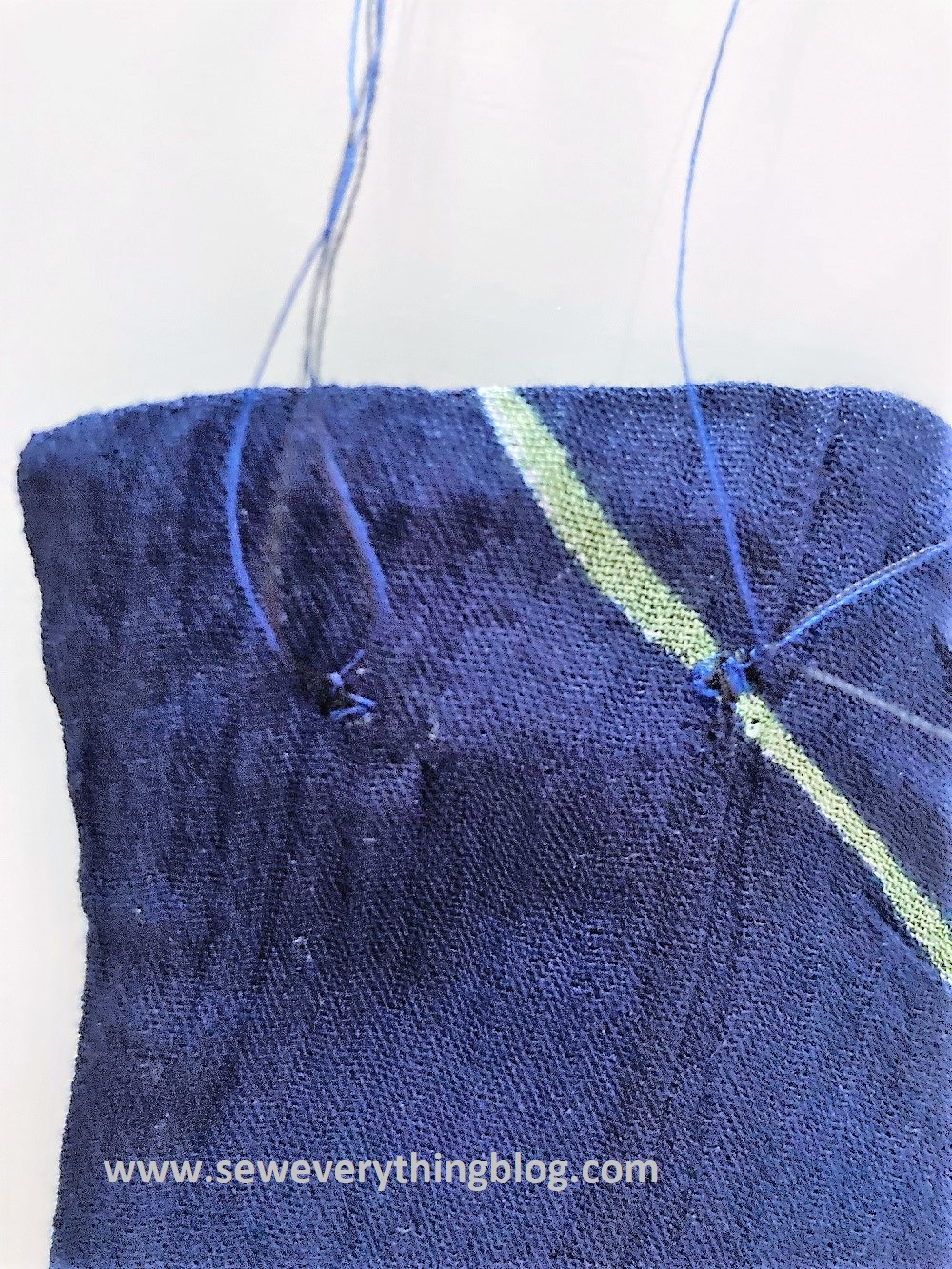 Tie a knot with all the thread tails to secure and cut away the extra thread. It is quicker and easier than I’ve made it sound but I think you understand.
