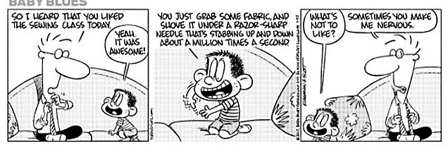 Here’s my man Hammie raving about his love of the sewing machine. With sharp needles moving at warp speed, the possibility of bloodshed — what’s not to love?