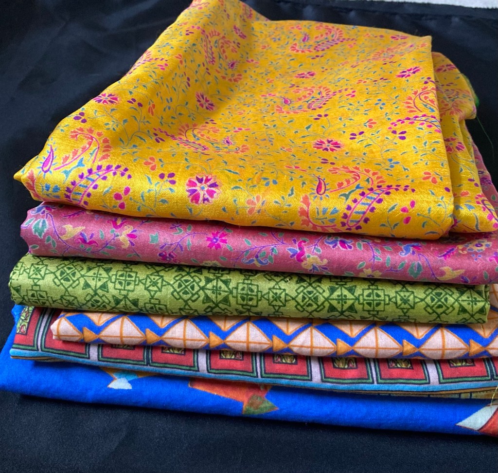 Rarely. Therefore, a rush to to the closet and fabric stash ensued. Not sure what I will do to capture the spirit of this art with these pieces but they’re here when I need them.