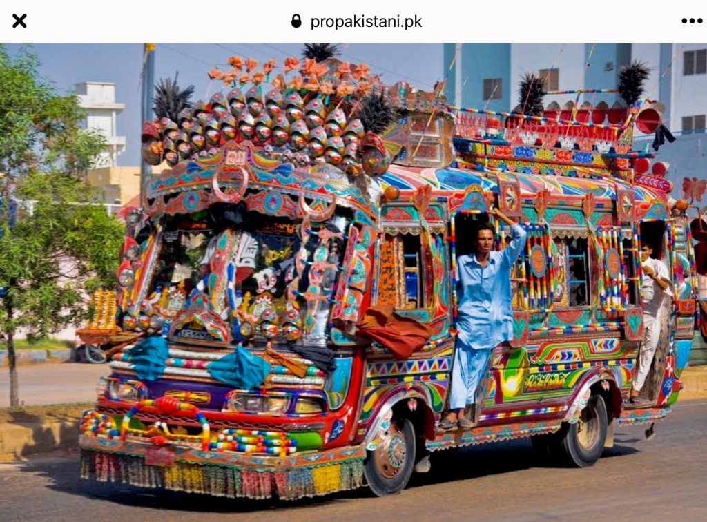 This art developed organically when bus drivers and truckers in Pakistan took to decorating their vehicles in statement making art. This vehicle art has it’s roots in Pakistani rural art expression.