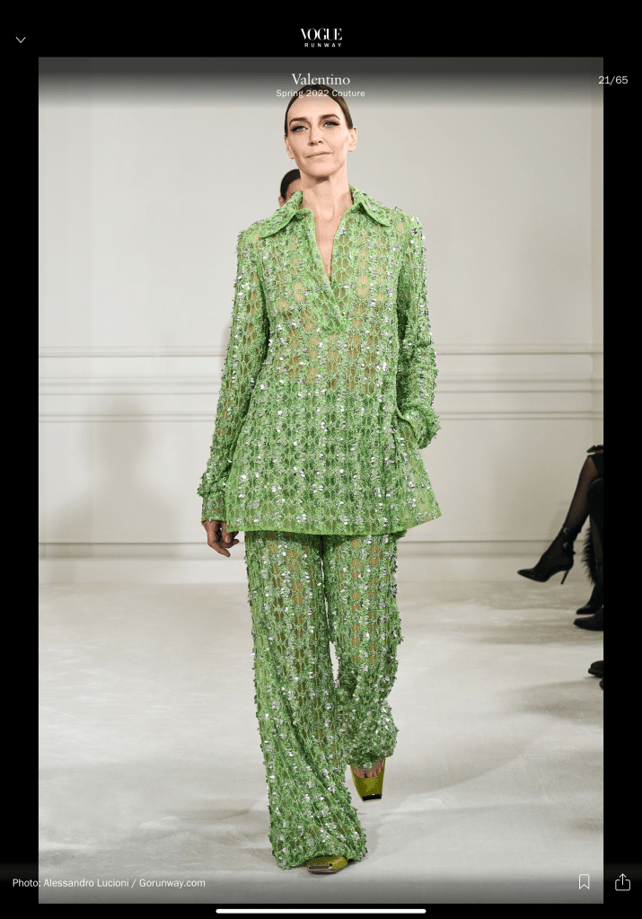 For this week’s haute couture inspiration, look #21 presented by Valentino at the Spring Couture 2022 show. It makes my heart sing. Then, look at the 1967 Oscar de la Renta — is it inspiration for Valentino? Things are very rarely new in fashion.