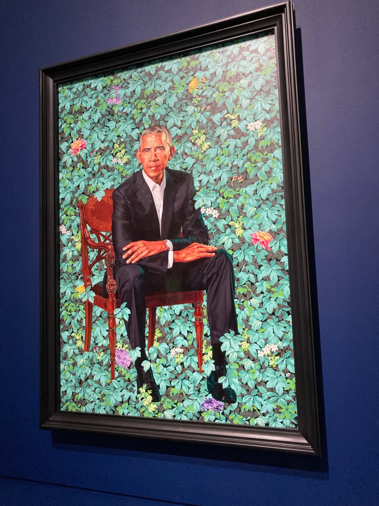 The Obama portraits arrived at the Museum of Fine Art Houston, and on the last day of the exhibit, my daughter and I managed to catch the display. May I say, I adore these portraits. Not just for the artistic licenses, but the inspiration behind each one. But, I only want to talk about the First Lady’s dress for now.