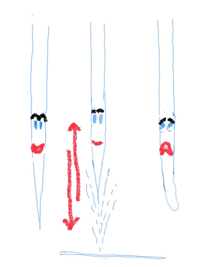 The sewing machine needle has a very short life span. You would too, if you were jumping into and out of layers of fabric (of varying thicknesses) at supersonic speed, multiple times a minute. Bear with me while I illustrate this concept with my still elementary drawing skills. Haha.