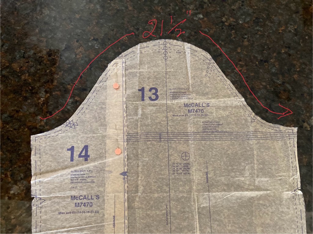 I love the princess lines, the length and the fabric from my go-to source, Sew Much Fabric. All good until fit issues started to crop up. Specifically, too much ease on the sleeve-cap in relation to the armhole. The sleeve cap has (and should have) more length all around than an armhole for a decent set-in sleeve — you just use the process of easing-in to make a nicely fitted shoulder. I was confident and cut out the sleeves. Come time to ease, and I found out that the sleeve cap had way too much ease. Why didn’t I pre-measure? Why would I? Huh? Here are some photos to make it clear…