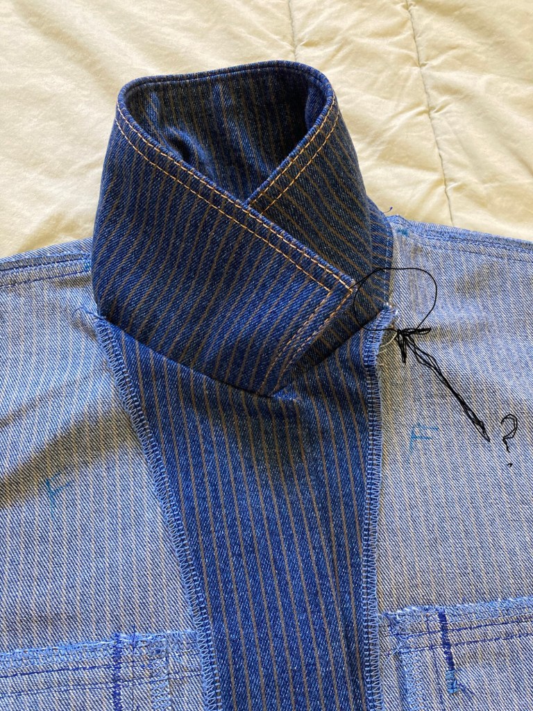 It’s not complete, but my progress with the jean-jacket is before you, and I list a few sewing tips and trials I came across so far; some issues were anticipated and therefore prepared for. Others were not expected; I’ll live with them or work around them — or will make a note for the next jacket. Remember, this is a trial.