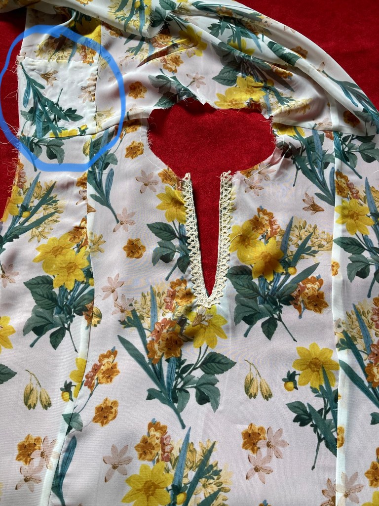 I solved my yucky neckline finish but caused another mishap in the same garment. It is not completed yet so be not afraid; there’s potential for more (insert sarcastic emoji here).