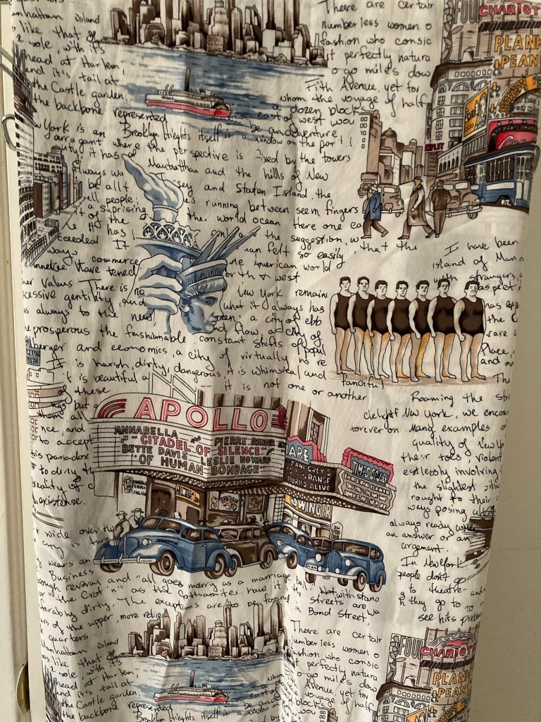 I love a city print! This one depicts New York, and there’s writing which is totally legible. I still do not know what to make with it — but it better be soon. I mean, if not now, when?? It is lightweight silk crepe, and was purchased in New York from a well known store (not Mood) whose name I have forgotten — yeah it was that long ago.