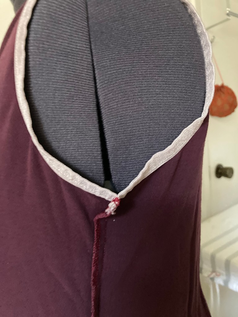 I probably would have sewn the main and lining fabrics RST, neckline first, then burrito rolled for the armscyes, and avoided using binding altogether. But hindsight is 20/20 right? I always look at stuff like this as “Well, I learned something!” 😉