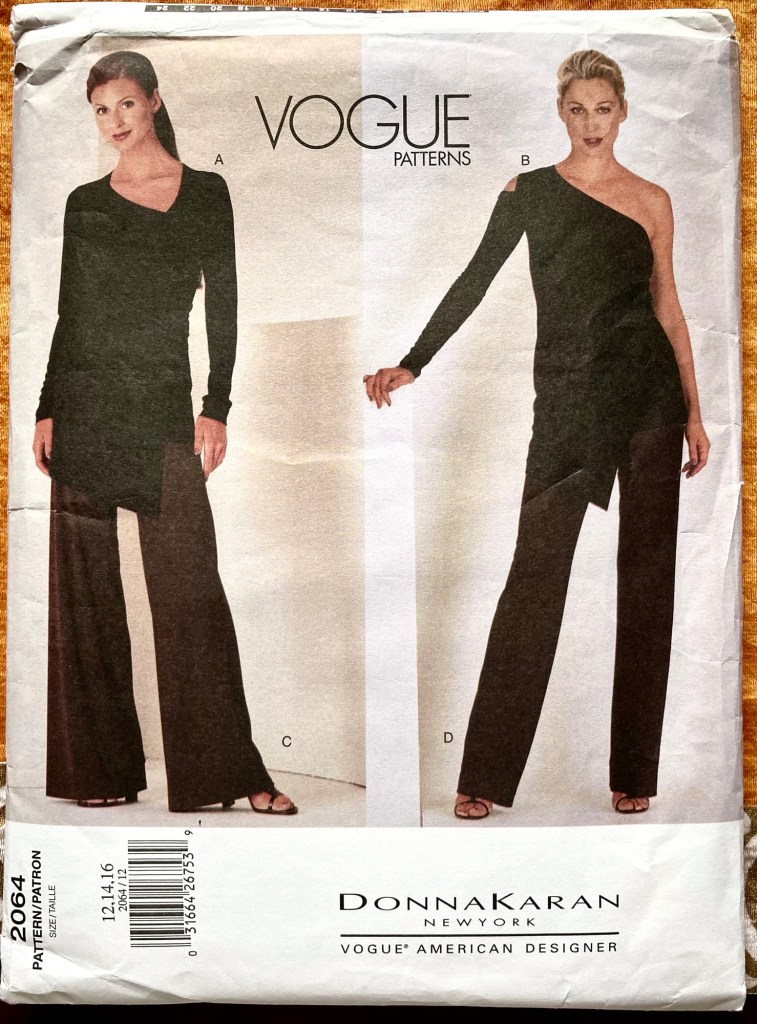 I had high hopes for this great looking wraparound tunic by the one and only Donna Karan, licensed by Vogue Patterns, View A. That enthusiasm came down with a crash — I’m always hopeful but right now it’ll have to go into UFO (UnFinished Object) mode. Here’s why: