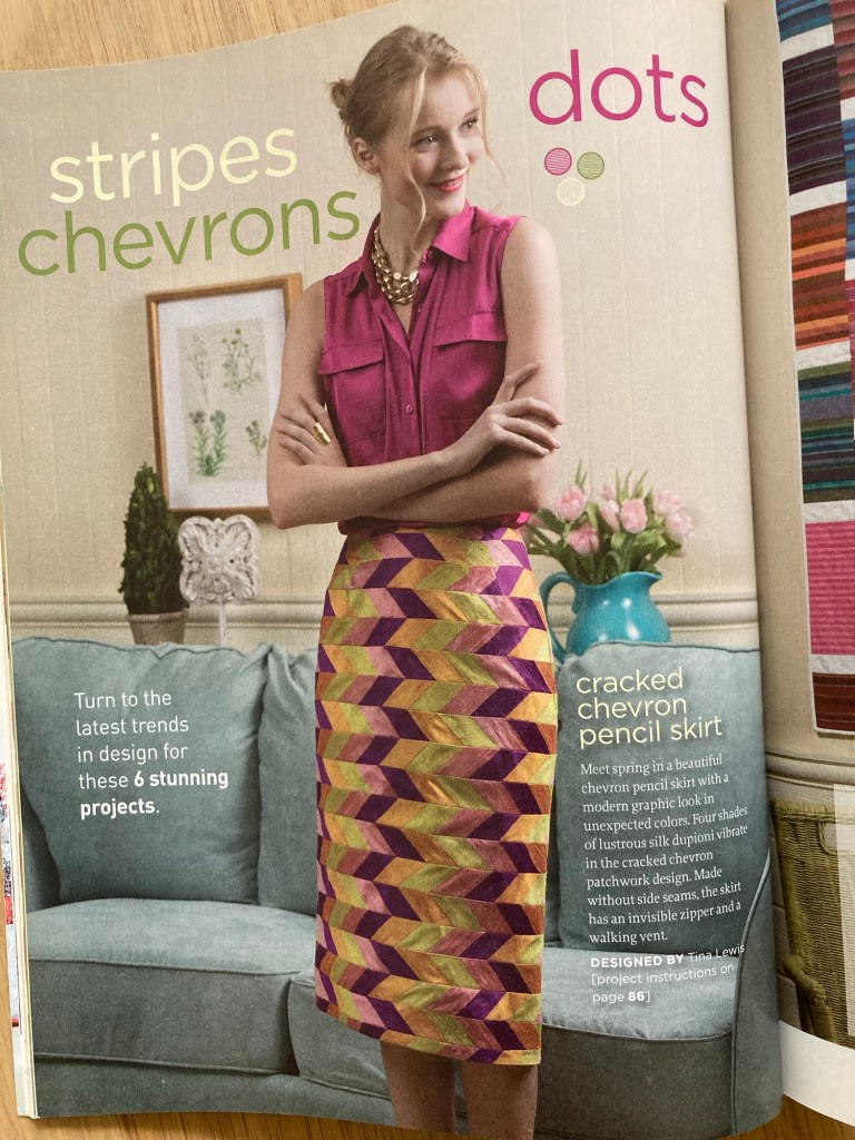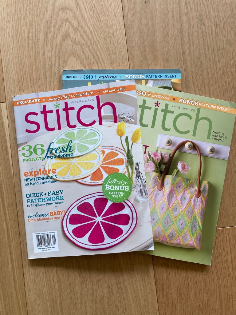 Assay the accessible bookshelf: There are patterns included in some books and magazines stored on my still-accessible shelf. The out-of-print Stitch magazine has pattern inserts for featured projects. I saved whatever old issues I had because the eye candy vibe is admirable. I am currently looking through the issues to find a project — may not be a wearable, but fun to make. Fun fact: they printed some of my projects in a couple of old issues. Not the gorgeous skirt shown below.