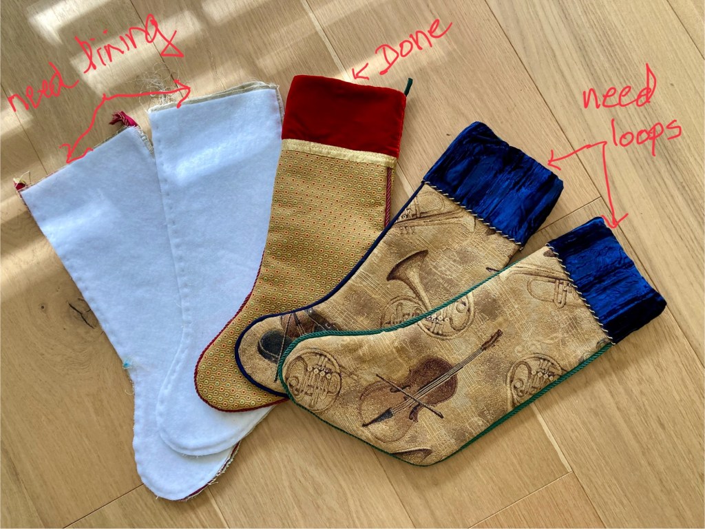 Assay the work-in-progress (or abandoned) pile: To compensate for the now-WIP black jersey tunic mentioned above, I peeked inside the unfinished stash. I still love these unfinished stockings! This may be their time in the winter sun. “One in, one finished” should be a stash-ist philosophy.