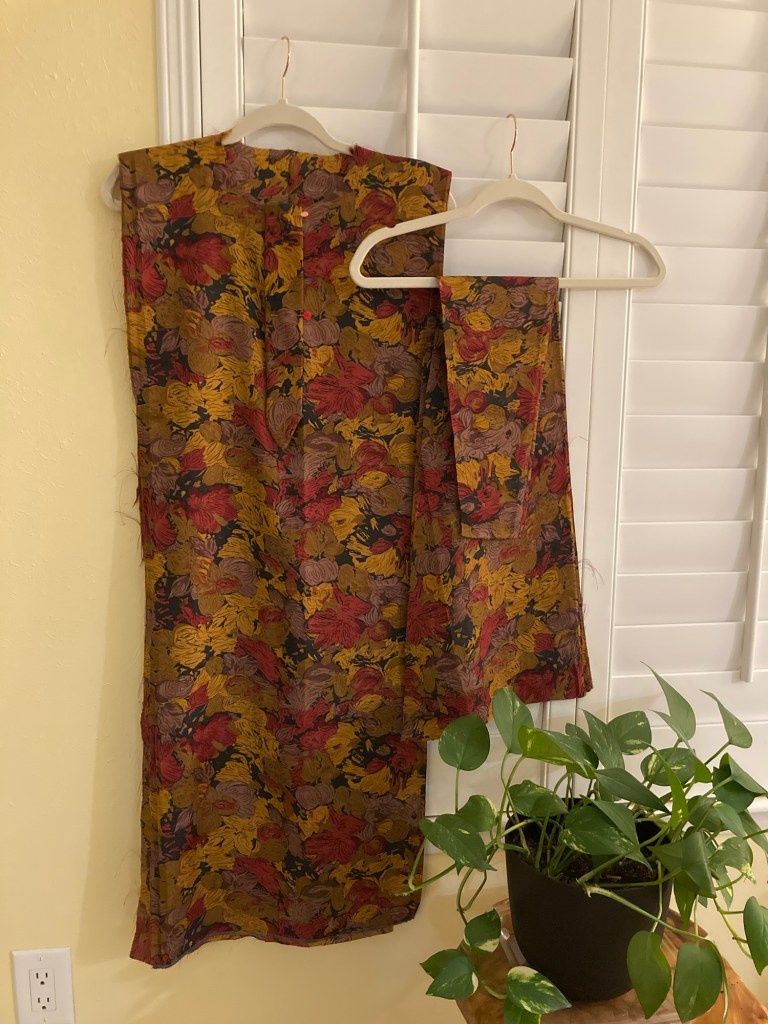 Change Sewing Plans and Mindset: I discovered that I could just change sartorial-sewing plans. There’s one wardrobe item that doesn’t need a commercial pattern — the kurta — a wonder of geometric manipulation. So, a kurta is what’s on my dining/sewing table now. For details on how to make it, type kurta in the search box on this blog.