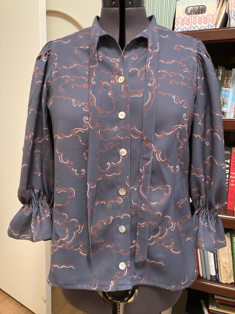 The shirt is designed by a company called Pattern Emporium, and they’ve aptly named it the Lyrical shirt — it’s gives off such happy vibes, in my opinion. I have not had a chance to make it for myself yet, but certainly plan to do so because it seems to sing. It’s femininity lies in gathers at the sleeve-head, the wrist and back yoke — but no way is it sickly sweet. I believe that the more tailored neckline (choice between shirt collar and long neck ties) keeps it from being fussy.